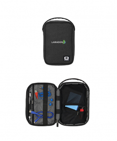 The ultimate travel organizer, the Vault holds cords, charging bricks, memory cards and more tech gear. Made with 900D poly two-tone with PU coating/200D poly lining. Padded grab handle Interior zippered pocket Elastic loops for cords and pens Two interior zippered mesh pockets. 9" H x 6" W x 2.5" D